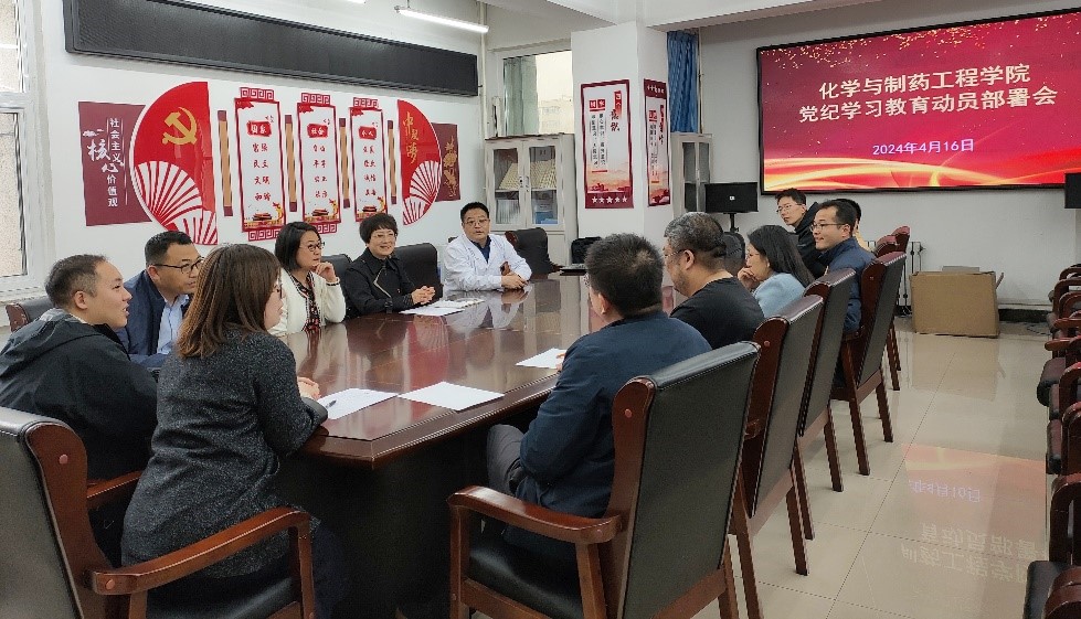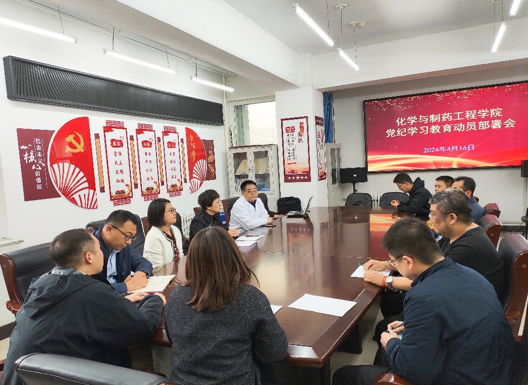 4月16日,化学与制药工程学院召开党纪学习教育动员部署大会,深入学习贯彻习近平总书记关于党纪学习教育的重要讲话和重要指示精神,按照学校党委的工作部署,启动部署学院党纪学习教育工作,全面加强全院党员干部的党纪学习教育,确保党的纪律在全院各级党组织和党员干部中落地生根。化学与制药工程学院党委委员、领导班子成员、各党支部书记、各系(中心、两办)主任参加本次会议。化学与制药工程学院党委书记董春欣主持会议并讲话。