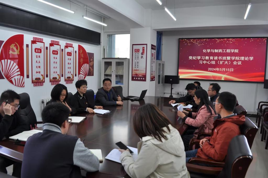 5月15日下午,化学与制药工程学院召开党纪学习教育读书班暨党委理论学习中心组(扩大)会议。深入学习贯彻习近平总书记关于开展党纪学习教育的重要讲话和重要指示精神,仔细研读《中国共产党纪律处分条例》,全面加强全院党员干部的党纪学习教育,确保党的纪律在全院各级党组织和党员干部中落地生根。化学与制药工程学院党委委员、领导班子成员、各党支部书记、各系(中心、两办)主任参加本次会议。化学与制药工程学院党委书记董春欣主持会议并讲话。