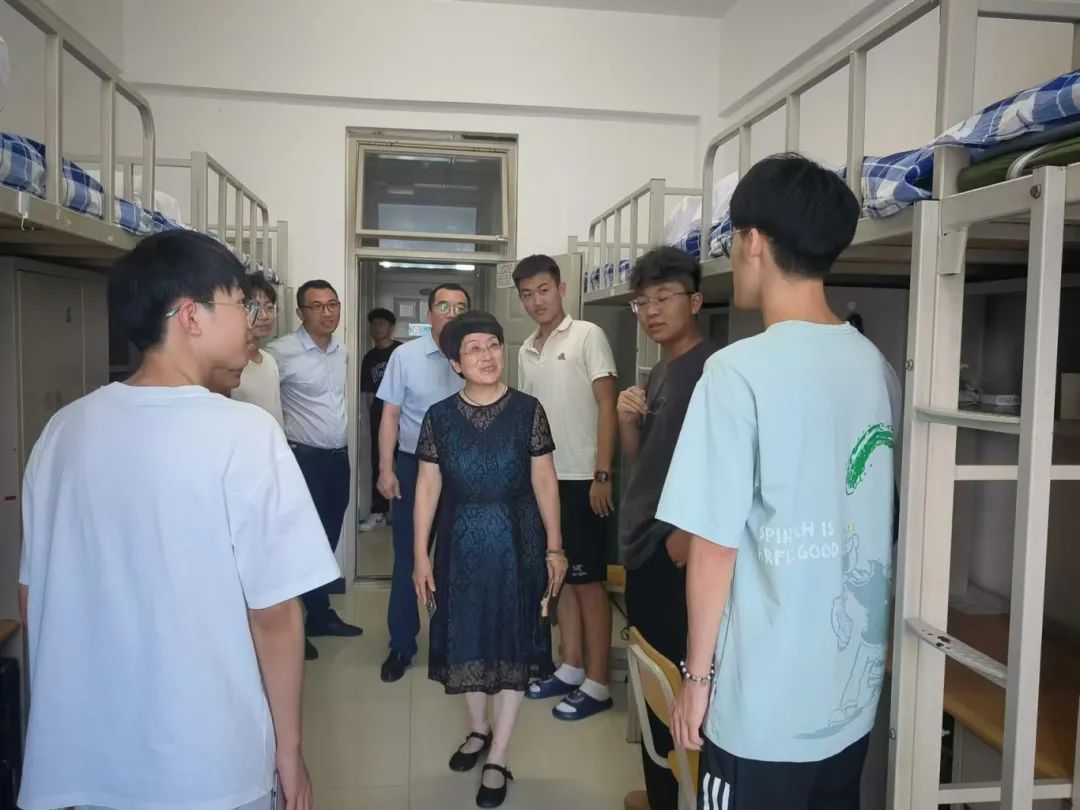 为深入了解2024级新生入校住宿情况,帮助2024级新生更快地适应大学生活,2024年8月29日下午15:30分,化学与制药工程学院开展新生寝室走访慰问活动。化学与制药工程学院党委书记董春欣、院长金星、党委副书记郑典亮、2023级辅导员赵翠翠老师、2024级辅导员张竣尧老师、2022级辅导员王泽宇老师一同前往新生寝室展开查寝慰问工作。