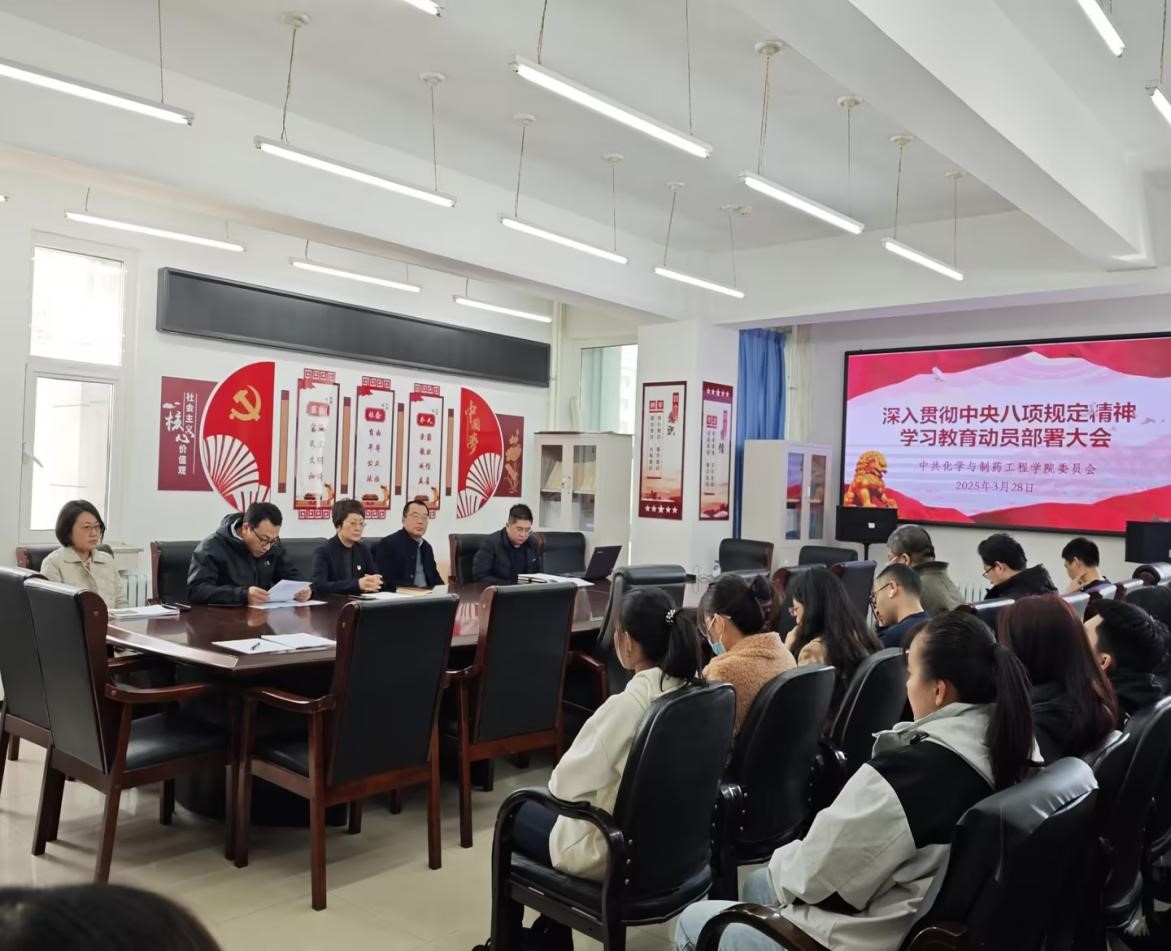 3月28日,根据上级党组织要求,化学与制药工程学院党委召开深入贯彻中央八项规定精神学习教育动员部署会,审议通过《中共吉林化工学院化学与制药工程学院委员会深入贯彻中央八项规定精神学习教育实施方案》。学院党委书记董春欣主持会议并作动员讲话。