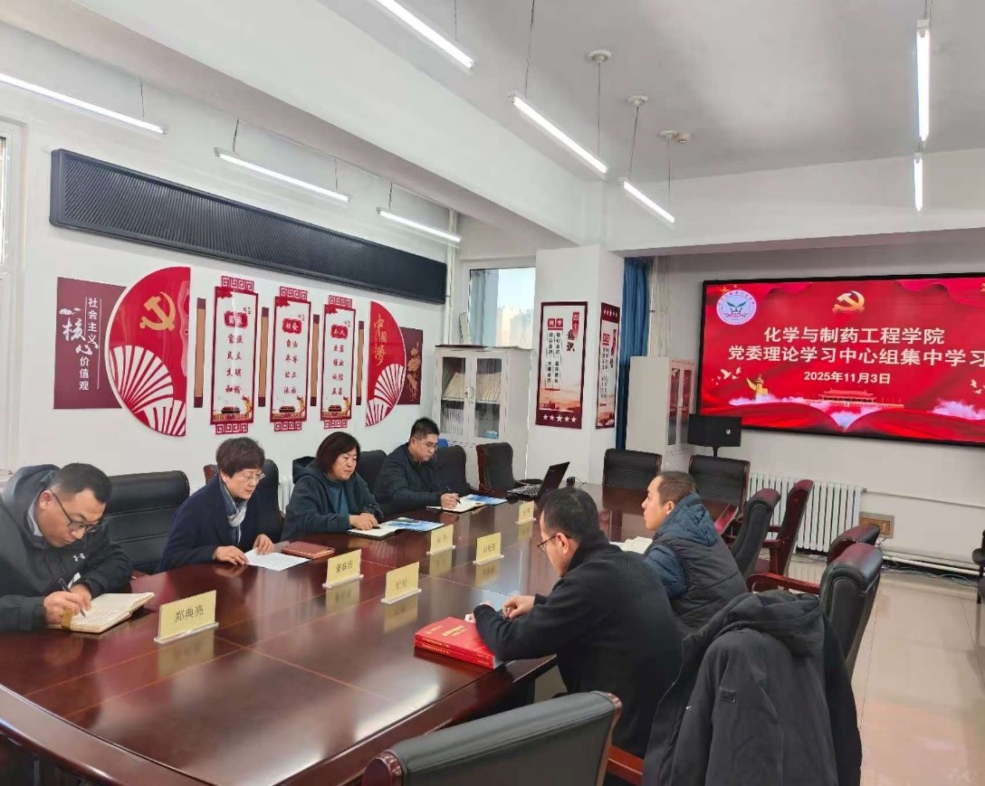 2025年11月3日,化学与制药工程学院在化工实验楼A305会议室开展党委理论学习中心组集中学习。会议由学院党委书记董春欣主持,学院党政班子成员及各基层党支部书记参加会议。