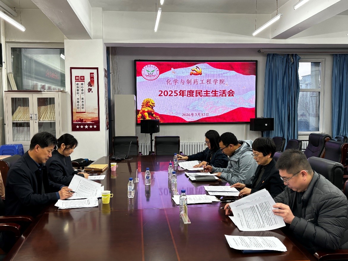 根据学校党委的安排部署和学院民主生活会的方案,2026年3月12日下午,化学与制药工程学院党委召开2025年度领导班子和处级党员领导干部民主生活会。学校党委巡察工作办公室景春友主任和党政办公室裴佳祺老师到会指导。会议由学院党委书记董春欣主持,学院党委领导班子成员参加会议。