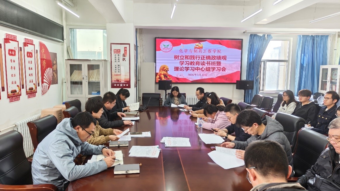 3月23日下午,化学与制药工程学院在化工实验楼A306会议室举办树立和践行正确政绩观学习教育读书班暨党委理论学习中心组专题学习会。学院党政班子成员、各党支部书记、全体副科级以上干部、学生党员代表参加会议。学院党委书记董春欣主持会议并讲话。